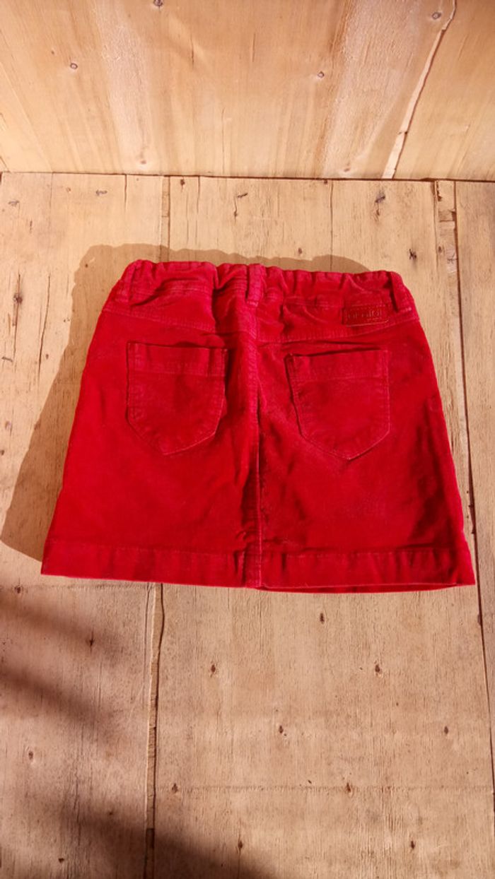 Jupe en velours, très bon état, très peu porté. 2 poches avant et 2 poche arrière. Fermeture éclair et pression. Couleur rouge foncé.