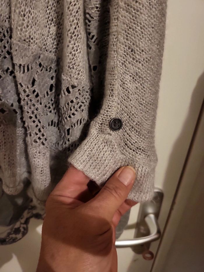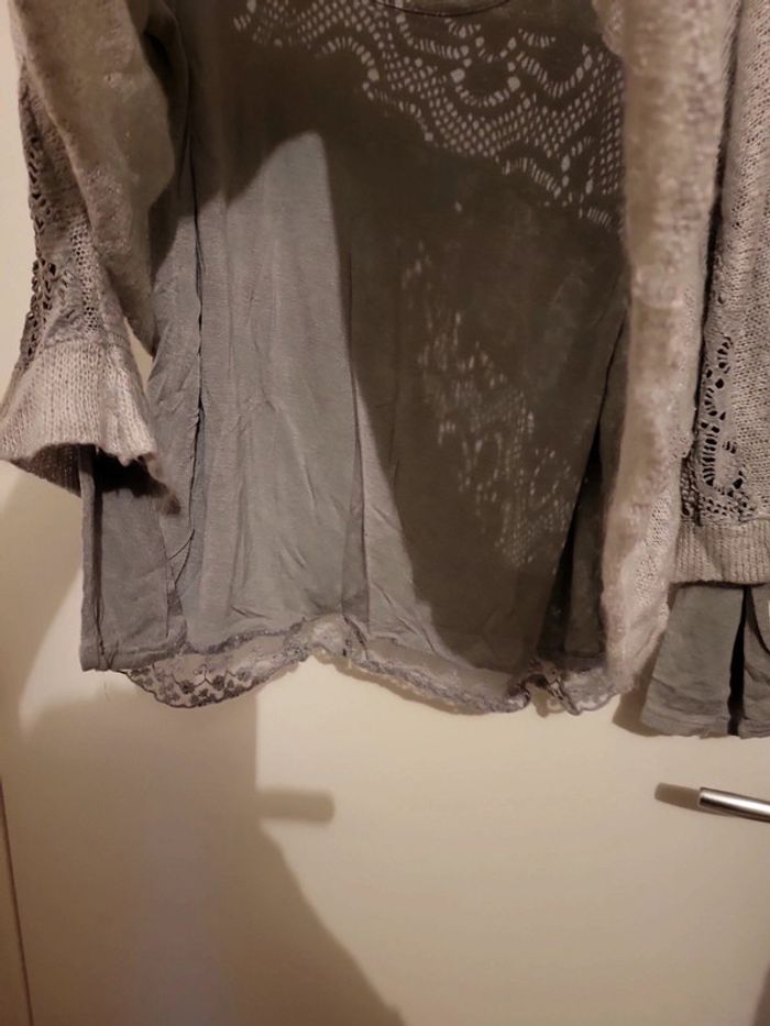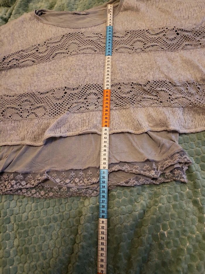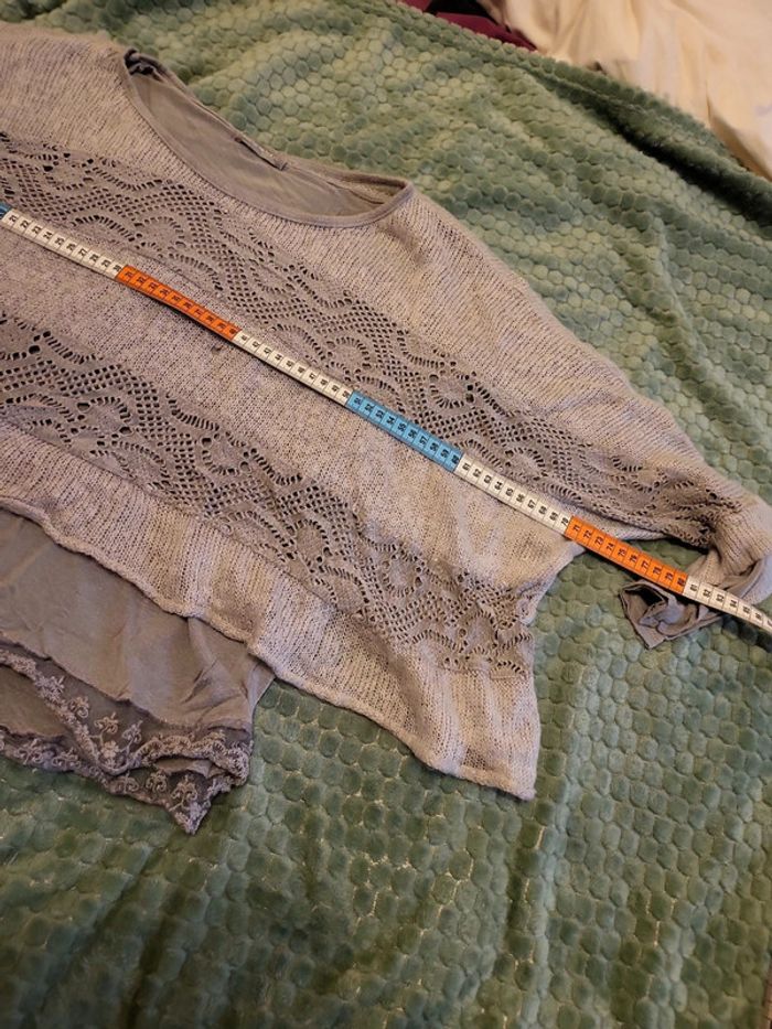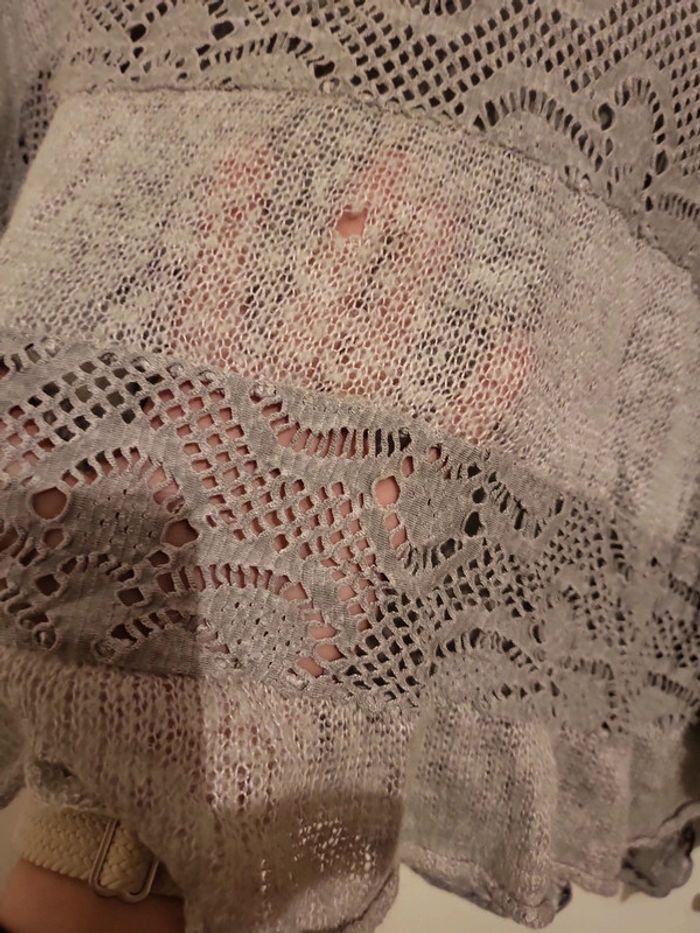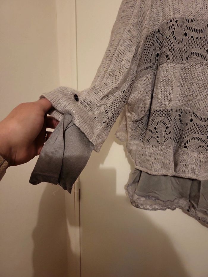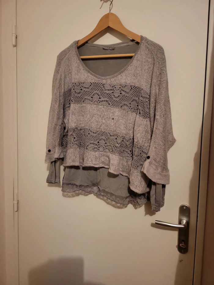 Pull leger et haut manches longues Dentelle et crochet Pull oversize très cool Léger trou devant (à reprendre ou bien se confond avec le crochet du pull) C1
