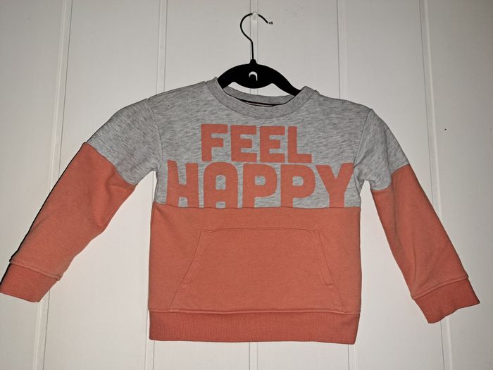 Pull orange et gris "FEEL HAPPY" Taille 3ans. Très bon état.