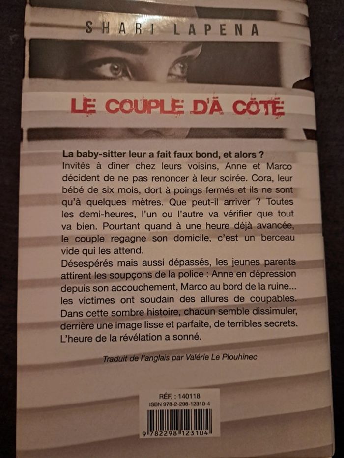 #pitchoune711livre Roman Le Couple d'à côté Auteur Shari LAPENA Édition France Loisirs Neuf