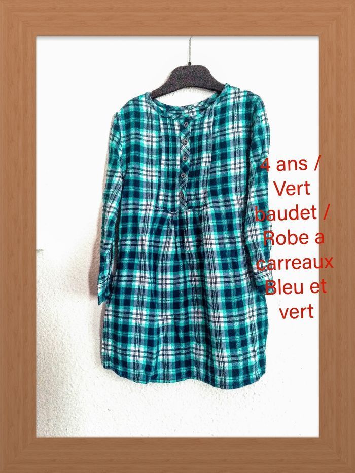 4 ans vert baudet robe carreaux bleu et vert - photo numéro 1