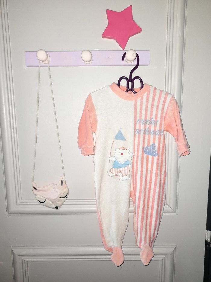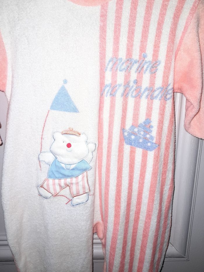 Pyjama en taille 6 mois couleur corail annoté "marine nationale" De nombreux autres habits, jeux, accessoires en vente sur mon profil 😊 Possibilité d'achat en lot (reduit les frais d'envoi) N'hésitez pas à vous abonner à mon profil 😉 je rajoute souvent des articles