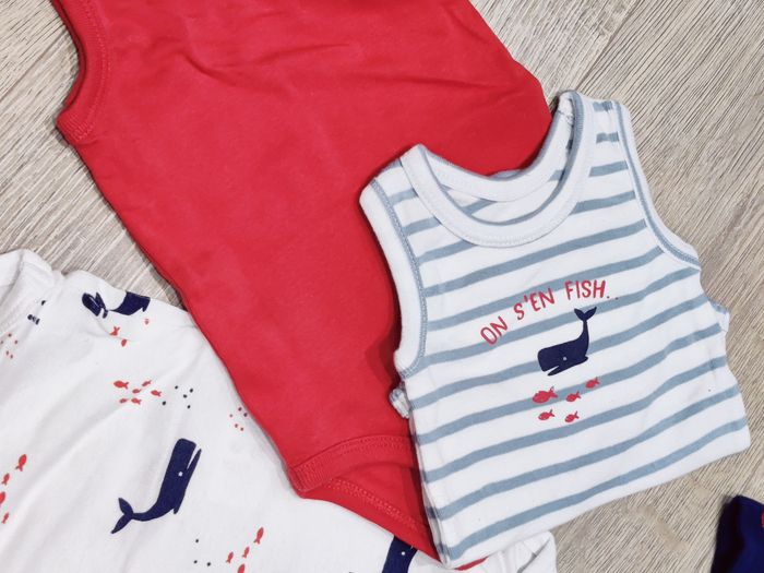 Lot de 3 bodies marcel thème marin La redoute Taille 6 mois neuf - photo numéro 5