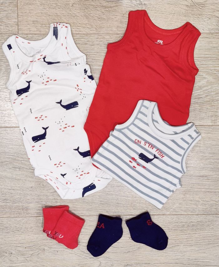 Lot de 3 bodies marcel thème marin La redoute Taille 6 mois neuf - juste lavé comme neuf - mixtes - 2 paires de chaussettes avec, rouge et marine #caro86170garçon #caro86170bébé #body #laredoute #body #garcon6mois #caro86170bebegarcon6mois - envoi rapide et soigné - d'autres articles disponibles dans mon dressing, n'hésitez pas à faire un lot, je propose des remises