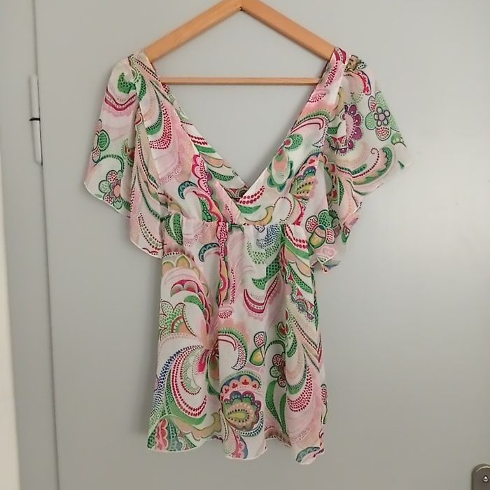 A manches courtes. A motifs colorés. Fluide, léger. Trafaluc. C7