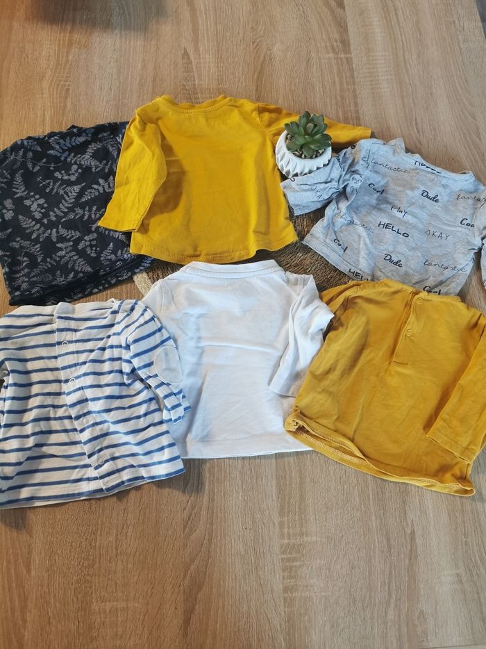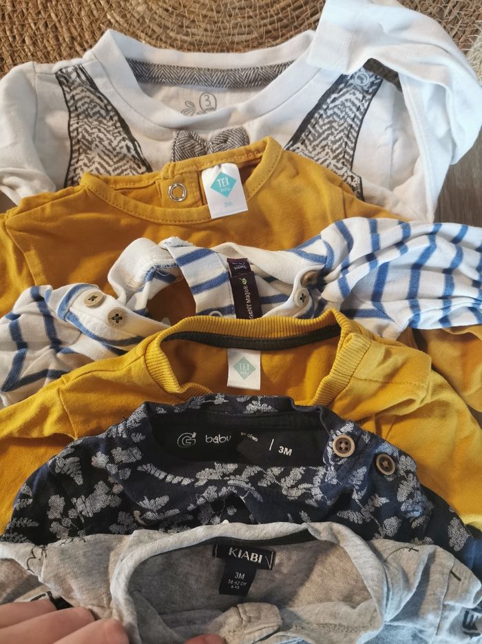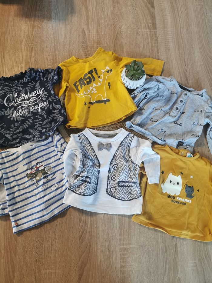 Lot de 6 tee shirts, tous en taille 3 mois toutes marques confondus (sergent major, Tex, gemo,...), tous en très bon état général, peu porter.