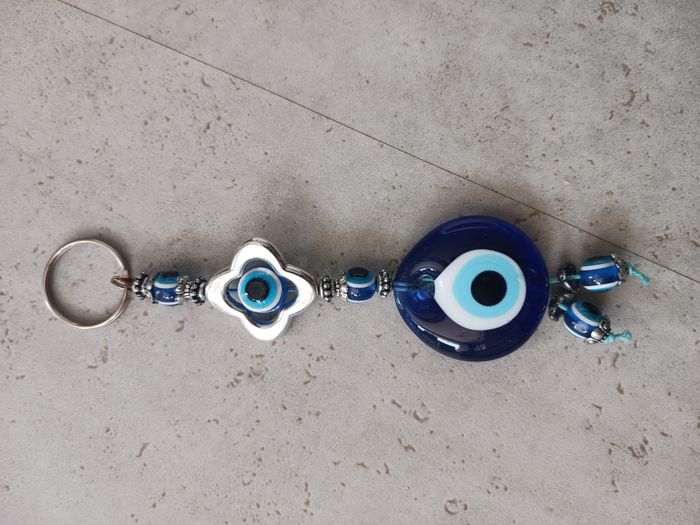 porte clés argenté metal et bleu