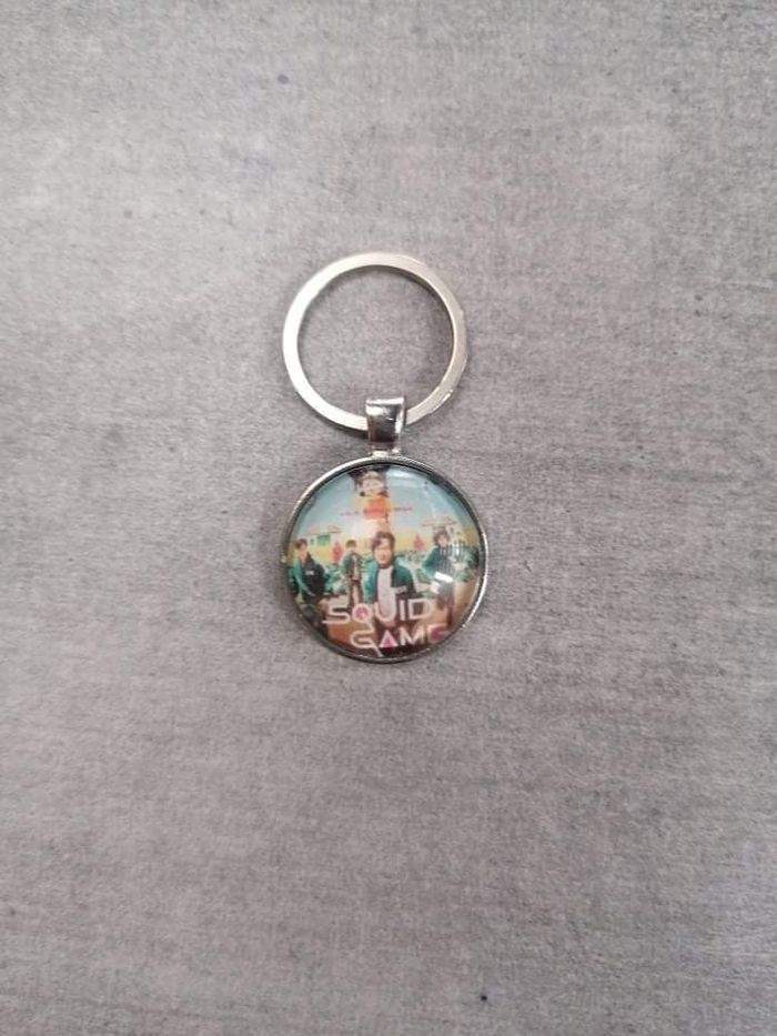 Porte clé avec un cabochon de 25mm de diamètre représentant Squid Game