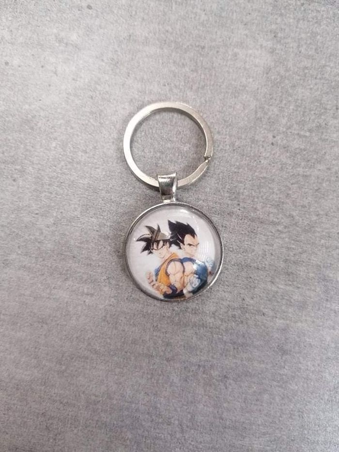 Porte clé avec un cabochon de 25mm de diamètre représentant Sangoku et Végéta de Dragon Ball