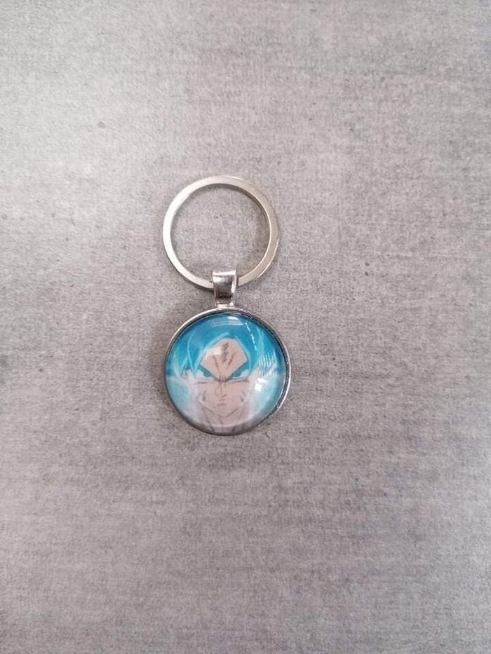 Porte clé avec un cabochon de 25mm de diamètre représentant Sangoku (Dragon Ball)
