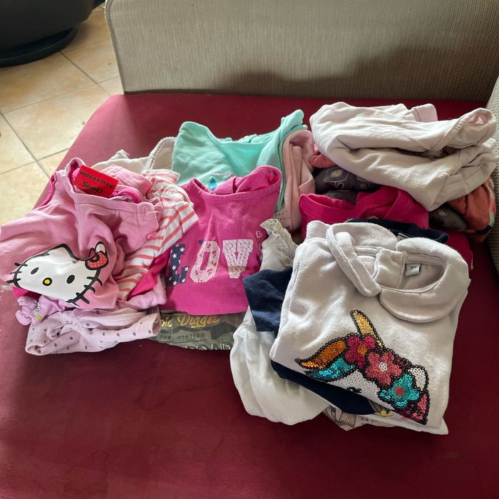 Bonjour ,je vend des T-shirt bébé fille ,très peu servis ,en bon état ,du 3 mois au 18 mois ,j’en ai encore qui ne sont pas sur la photo.
