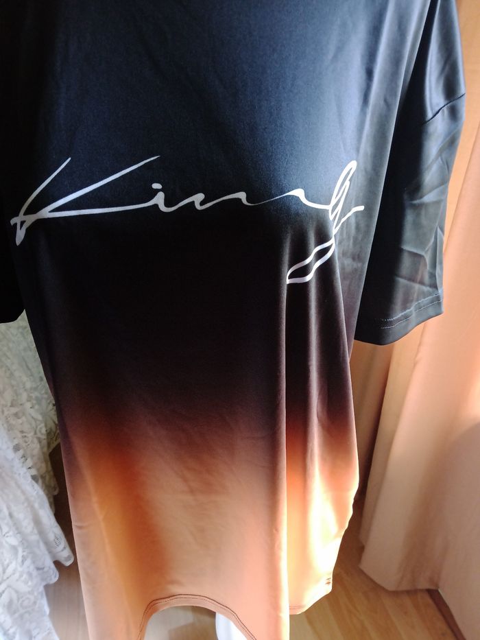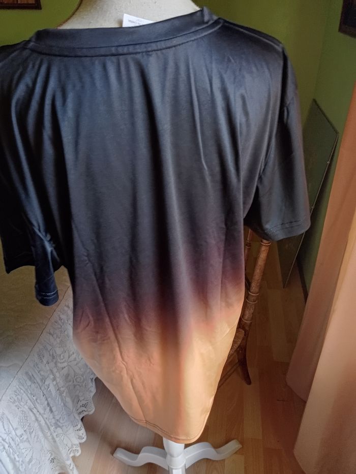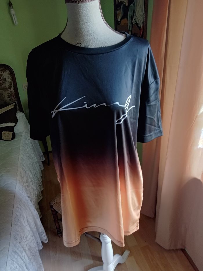 Tee shirt manches courtes taille L, neuf jamais porté, en 100% polyester. Noir et orange.
