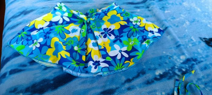 Vend maillot de bain 2 pièces et jupes Pas marque Taille 38 si je me trompe pas État satisfaisant
