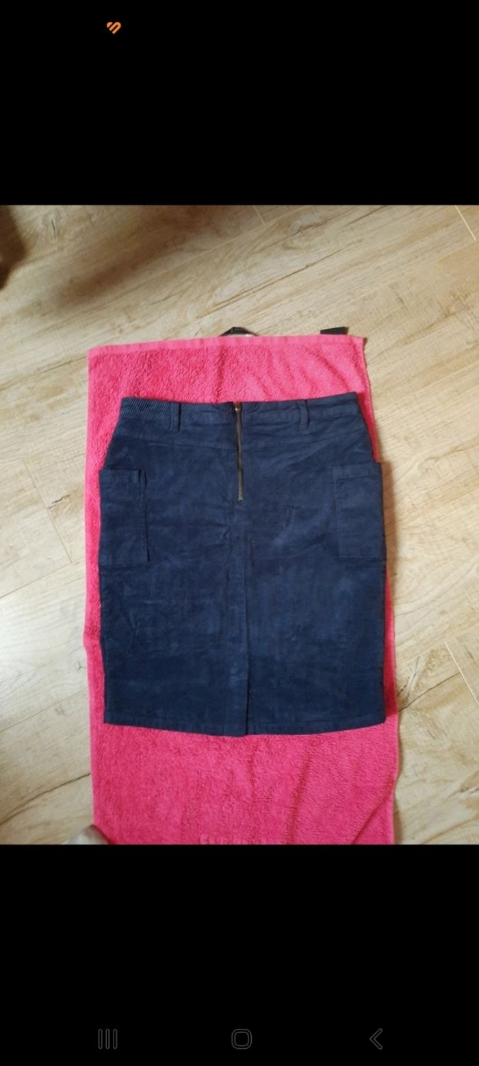 Jupe avec poches et fermeture éclair très bon état, peu mise, marque esmara couleur bleu foncé marine taille 40.