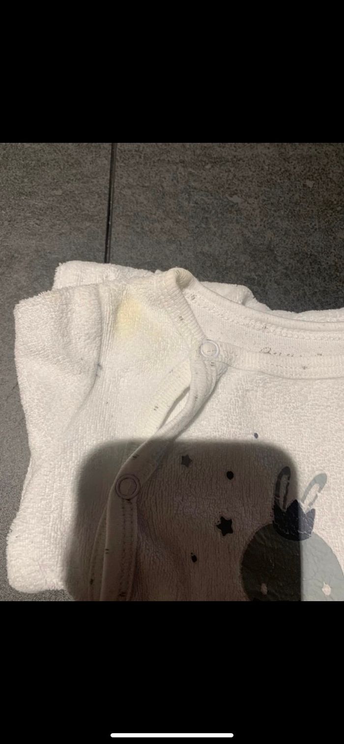 vend lot de 3 pyjama en 1 mois , 1 de chez gemo et 2 de chez bébé rêve, il y a un pyjama qui a une tache voir photo
