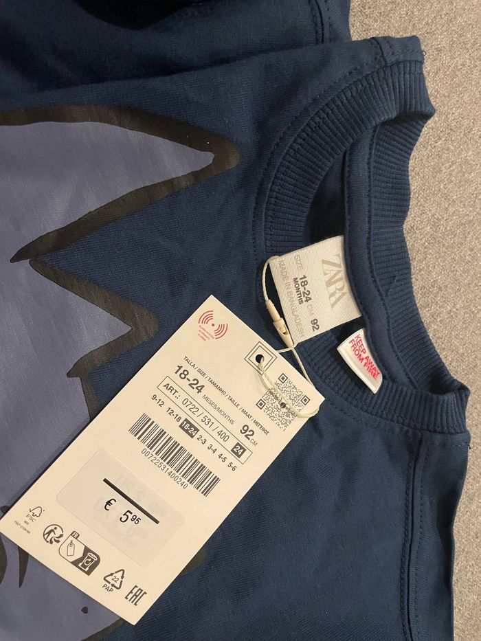 Tee shirt manche longue Zara neuf taille 18/24 mois
