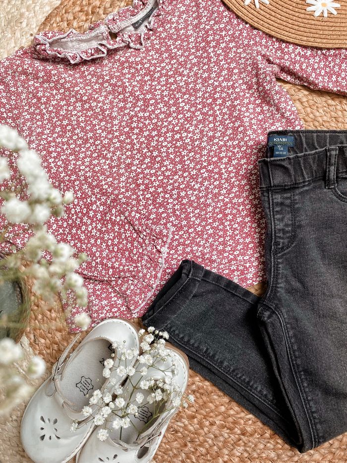 Blouse fleuris 6 ans Jean skinny 5 ans