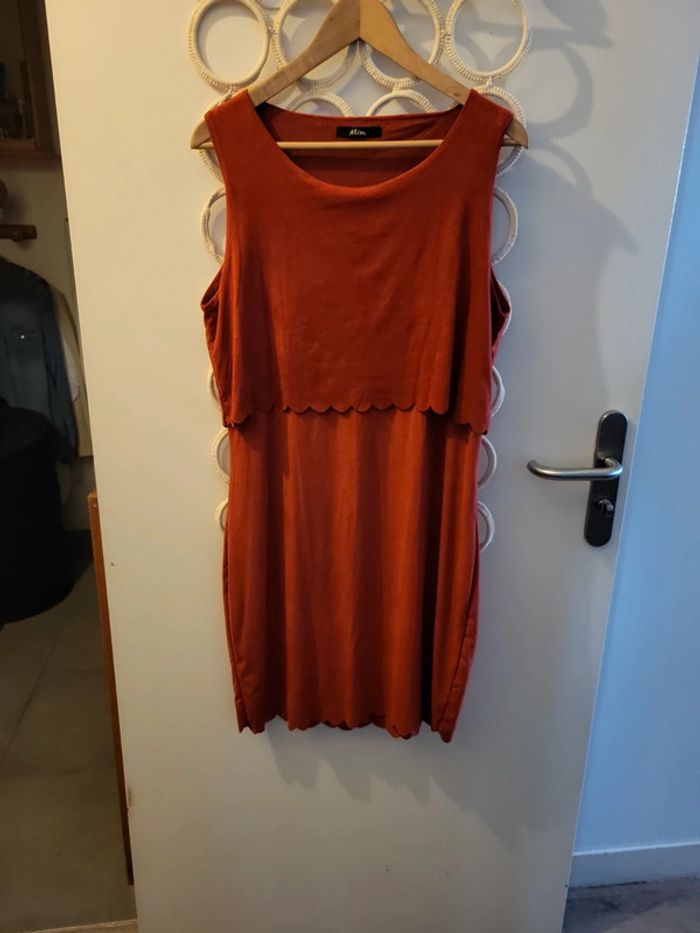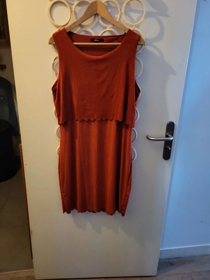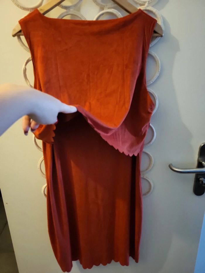 Belle robe couleur cuivré imitation daim. Mim. Taille L. En très bon état. Aisselle à Aisselle 50cm Longeur total 98cm