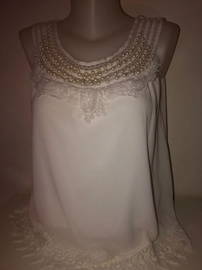 Haut broder perle au col taille 38/40 en excellent état
