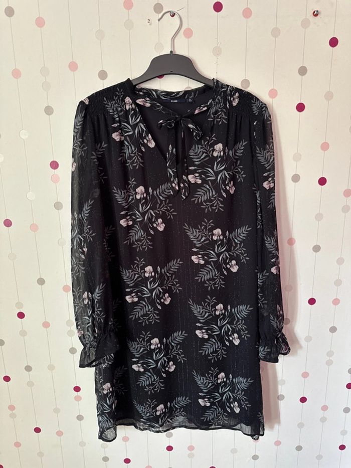 Robe voilage Fleurs Taille 42 Bleu marine / noir Arrive au genou