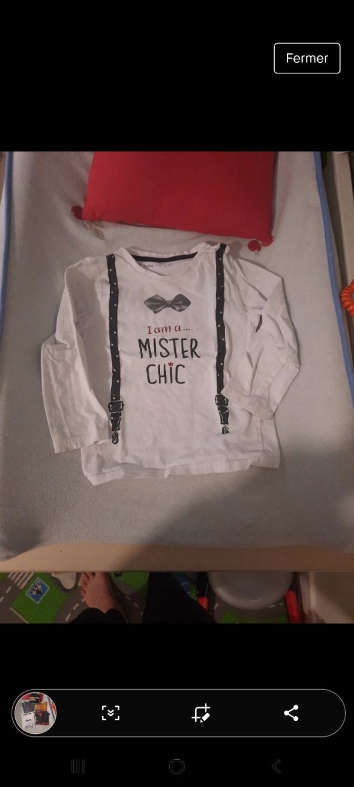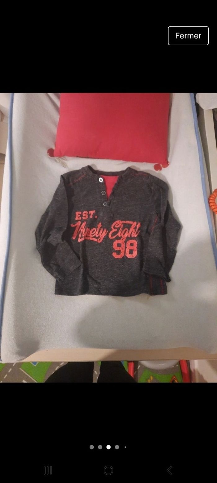 Je vends 5 t-shirt manches longues plus un que j'offre ,car légère tache sur le col (voir la photo) plusieurs marques. 24/36 mois