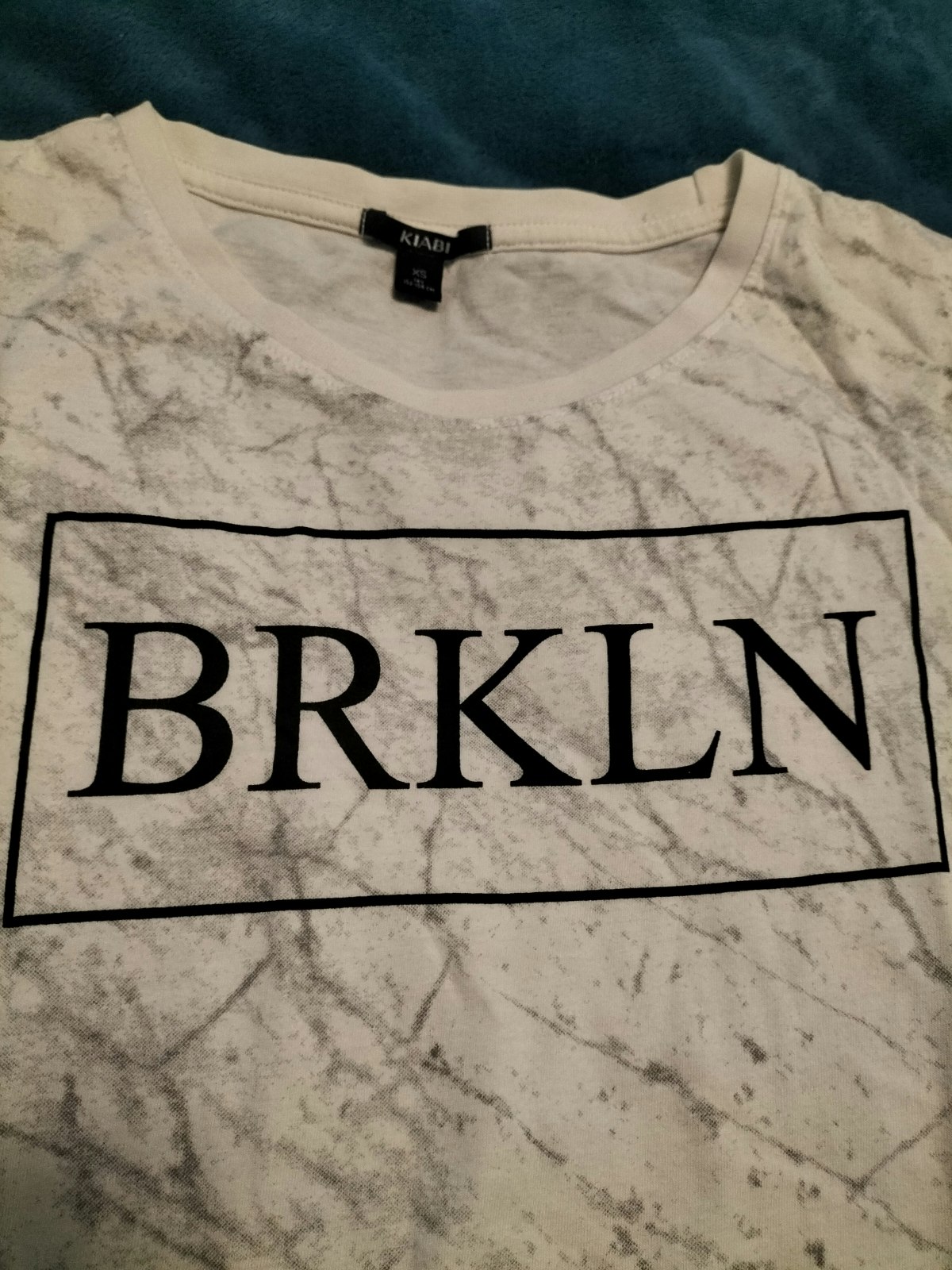 Tee shirt blanc à motifs gris marbré avec inscription devant De marque Kiabi taille 14 ans Neuf Ouverture en bas
