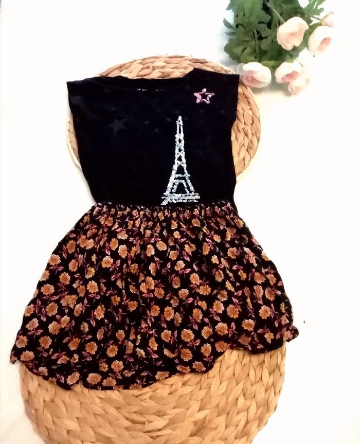 4 ans  Ensemble/  tao,  gemo jupe fleurie doublé et Tee-shirt tour eiffel a sequin printemps été /excellent état comme neuf - photo numéro 15