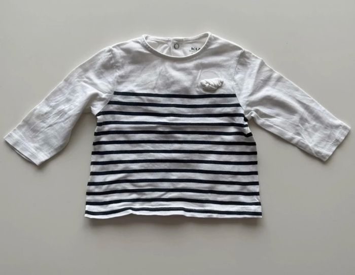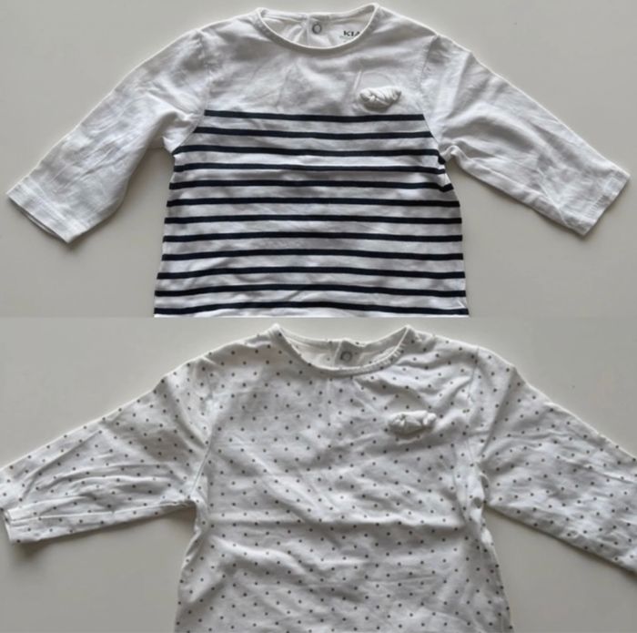 Lot de deux Tee-shirts manches longues, ouverture pression dans tout le dos, petit nœud sur le devant, rayé bleu et blanc ou blanc à pois doré > Marque Kiabi > Taille 3mois Les deux tee-shirts sont en photo en détail, en très bon état, ne présentent aucun défaut, ni tache, ni trou Envoie rapide et soigné N'hésitez pas à me contacter pour plus d'informations