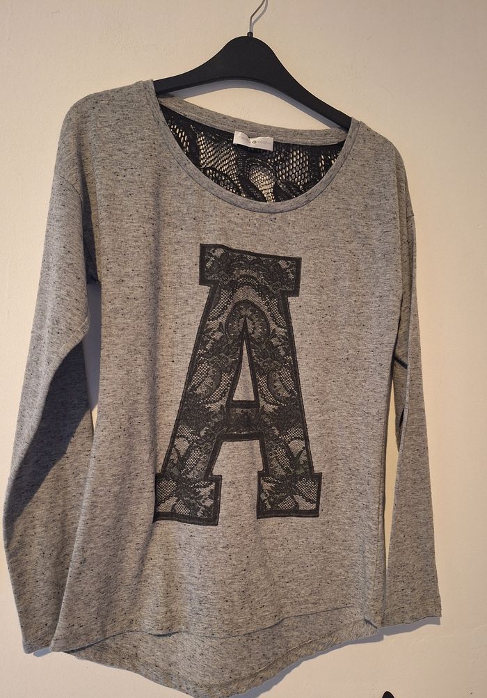 FEMME 36/S N°1670 maillot lm Gris chiné / noir Broderie haut du dos Plus long au dos 65% polyester 35% coton Taille 36 / s Cache cache 6,50€ #kelly_femmeT36