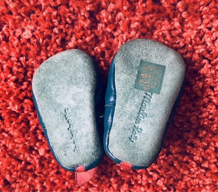 Chaussons en cuir Moulin Roty, collection les tartempois. Taille 0/6 mois. Excellent état.