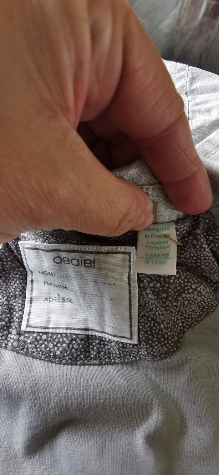 Bon état sauf les attaches des boutons le tissu à craqué d'où le prix. 18 mois 80cm Obaïbi Gris argenté Avec capuche amovible #fanny18mois Maison sans animaux non fumeur Conservé au sec dans dressing
