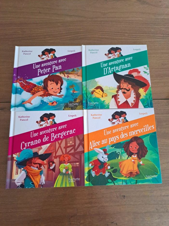 Lot de 4 livres de la collection "Au pays des livres" de Katherine Pancol et Lespeli : - une aventure avec Peter Pan - une aventure avec Cyrano de Bergerac - une aventure avec d'Artagnan - une aventure avec Alice au pays des merveilles Très bon état #livresmcdo #ciya76livresjeunesse