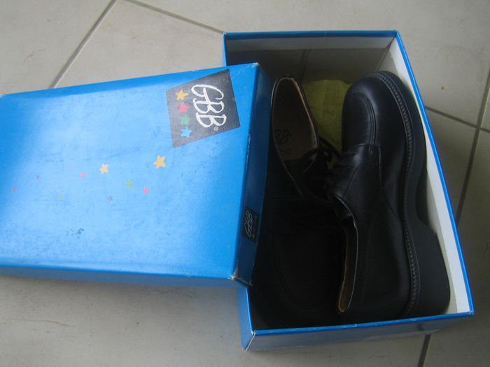derbies neuve jamais mise dans leur boite d'origine entièrement en cuir dessus et semelle taille 30 bleu marine marque GBB