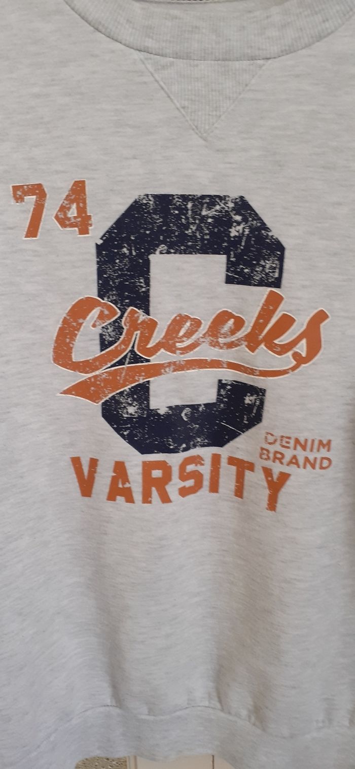 Sweat-shirt gris. Taille L Marquage et bouloché Voir photo pour les matières N est pas long comme l indique le site