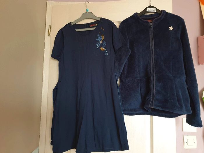 Thème des étoiles plein les yeux de chez Catimini, taille 10 ans pour la robe et 12 ans pour le polaire maille peluche tout douce. Pour la robe, vous détachez un côté en défaisant les 2 boutons de l'épaule et vous accrochez sur l'autre épaule ce qui robe réversible. Très bon état, ensemble pour tous les jours mais qui fait aussi habillé ... Idéal fêtes de fin d'année, réveillon... #fille10ansgain_de_place #fille12ansgain_de_place N'hésitez pas à regarder mes autres ventes Sergent Major, IKKS, Desigual... #fille10ansgain_de_place