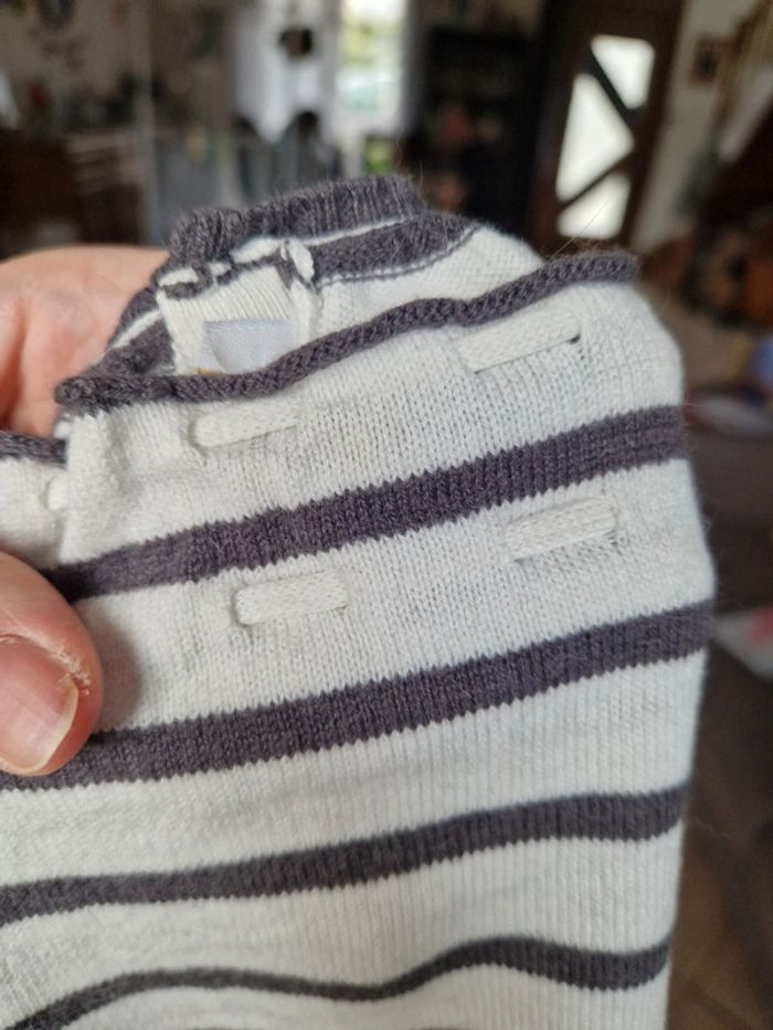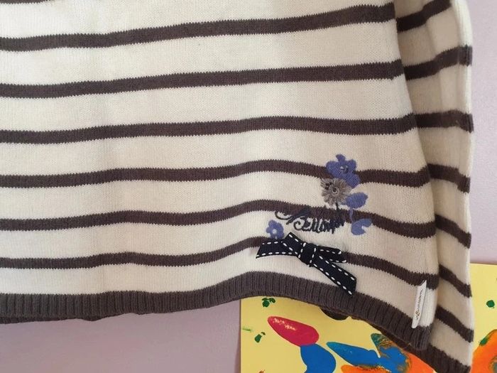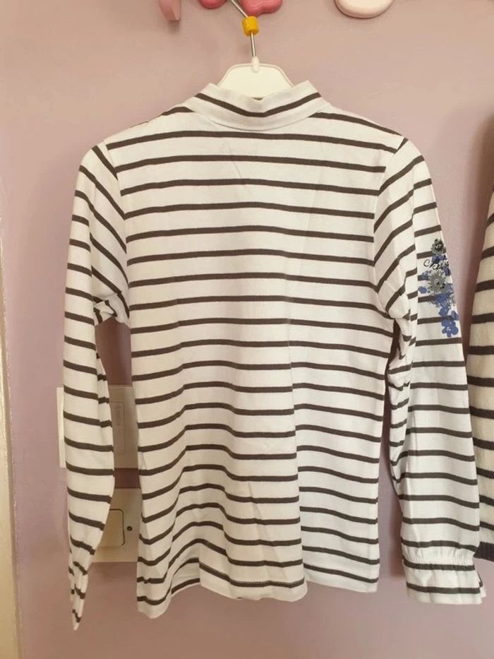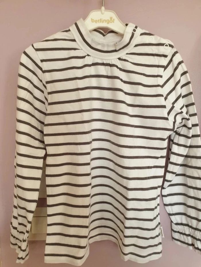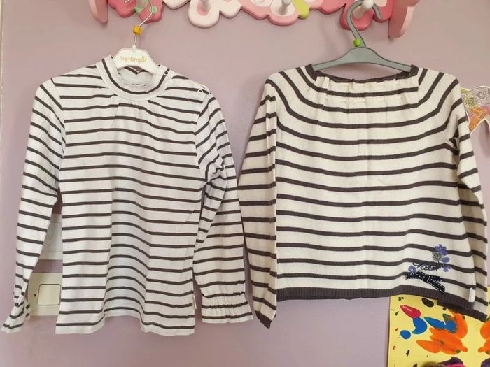 Ensemble composé d'un pull léger 5 ans (mais taille je dirais comme un 6 ans) + tee-shirt manches longues 6 ans. Je dirais peut-être petit 6 ans. Marque Berlingot. 1 endroit sur la manche du tee-shirt réparé mais ne se voit quasiment pas et une toute petite tâche en haut du pull mais se voit à peine sur la photo. #fille6ansgain_de_place
