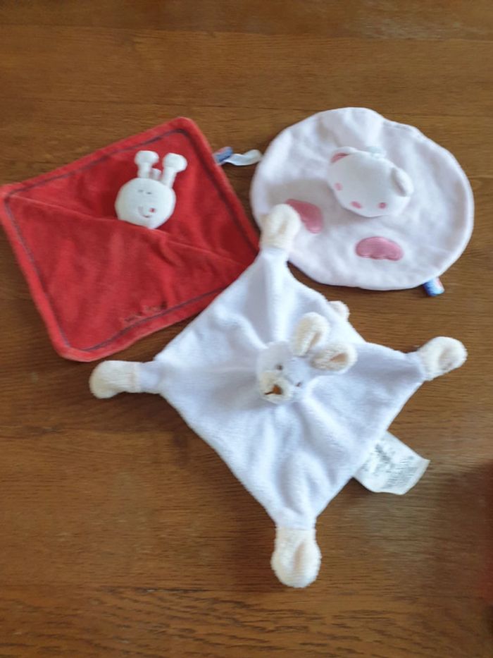 Lot de 3 doudous plats pour bébé, très bon état. #jouetsgain_de_place