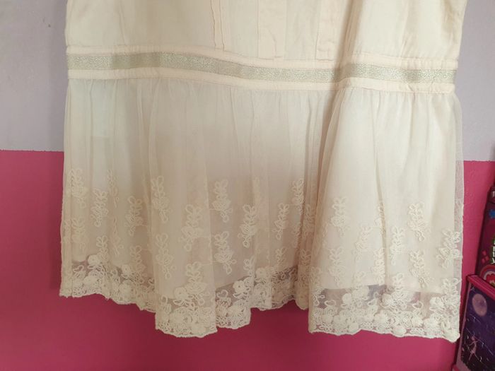 Robe rose pâle, avec tulle/dentelle en bas de la robe et les manches. Taille 9-10 ans, marque Mango. Beaucoup portée mais reste correcte, au niveau d'une manche, il faudra reprendre la dentelle. Je préfère ne rien faire vu mes talents de couturière 🤣 #fille9ansgain_de_place #fille10ansgain_de_place