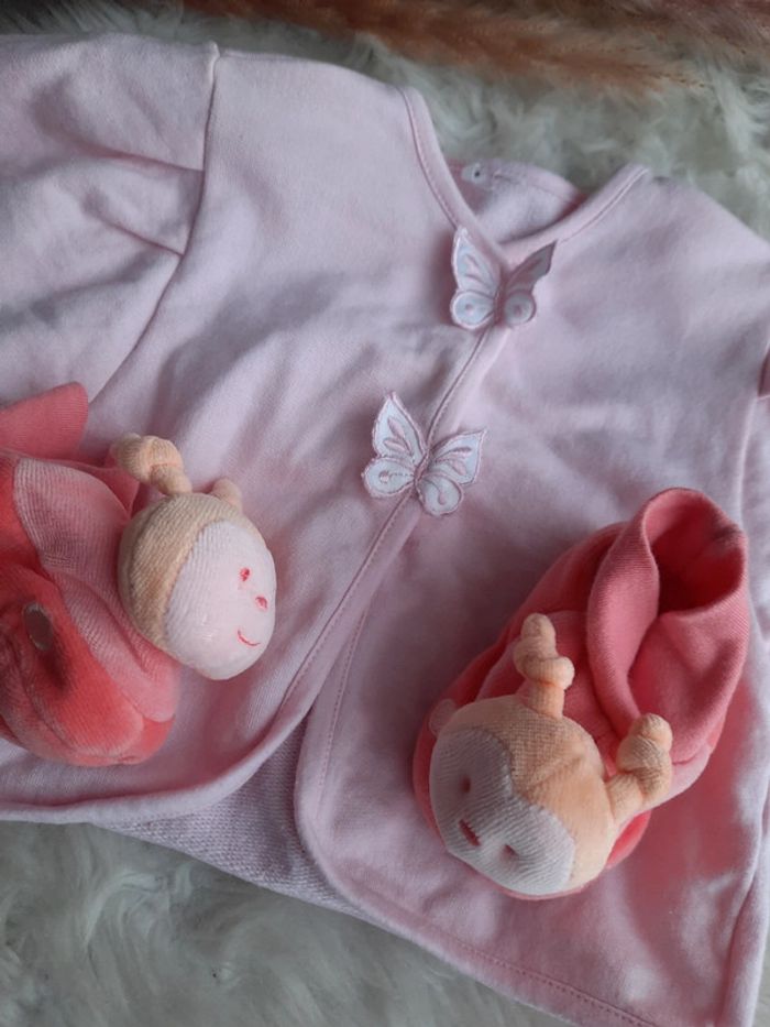 Veste légère rose papillon sans marque Pas d'étiquette taille, correspond à du 6/9 mois +Pantoufles coccinelle Kimbaloo Pour tout mes articles enfants c'est par ici 👉#hkibebe Pour mes articles en 9 mois 👉#hki9