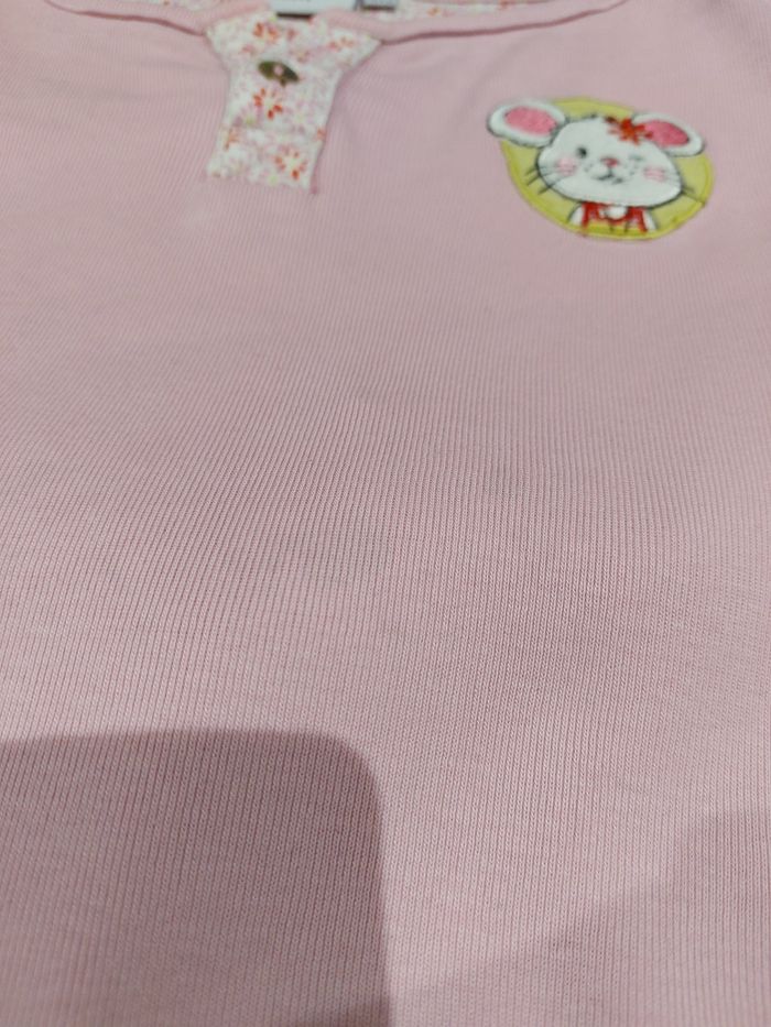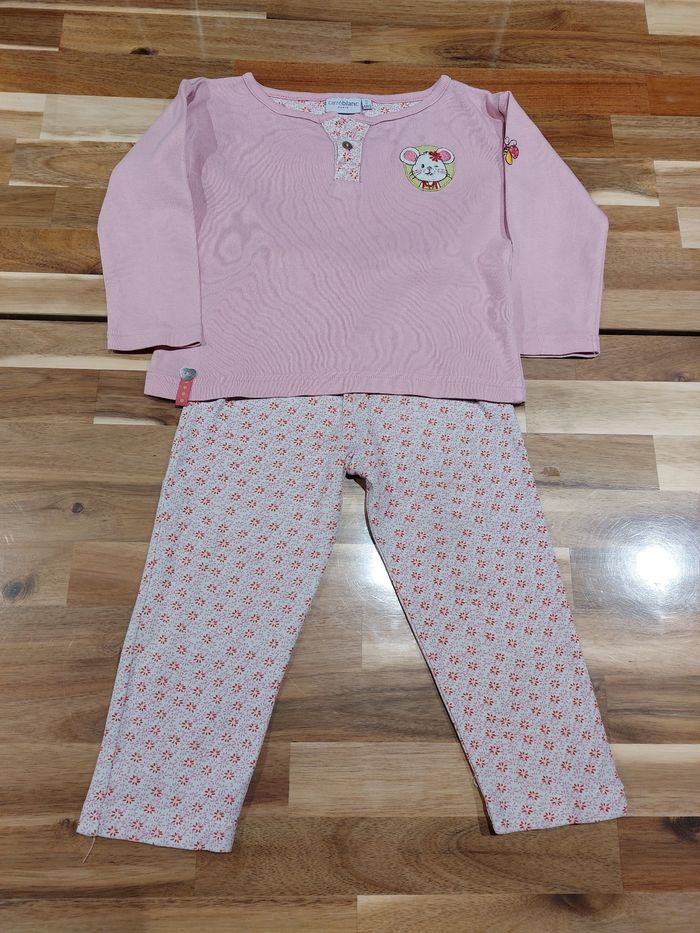 Pyjama en bon état. Il manque juste un bouton au niveau de l encolure mais ce n est pas gênant. Il y a de légères tâches discrètes (photo 2) et une petite tâche blanche au dos (photo 3). Taille 2 ans.