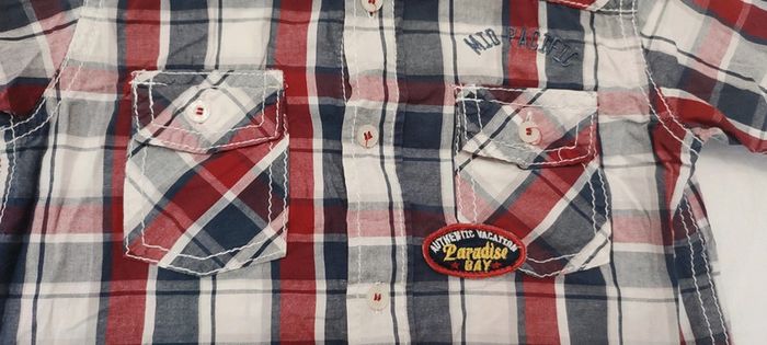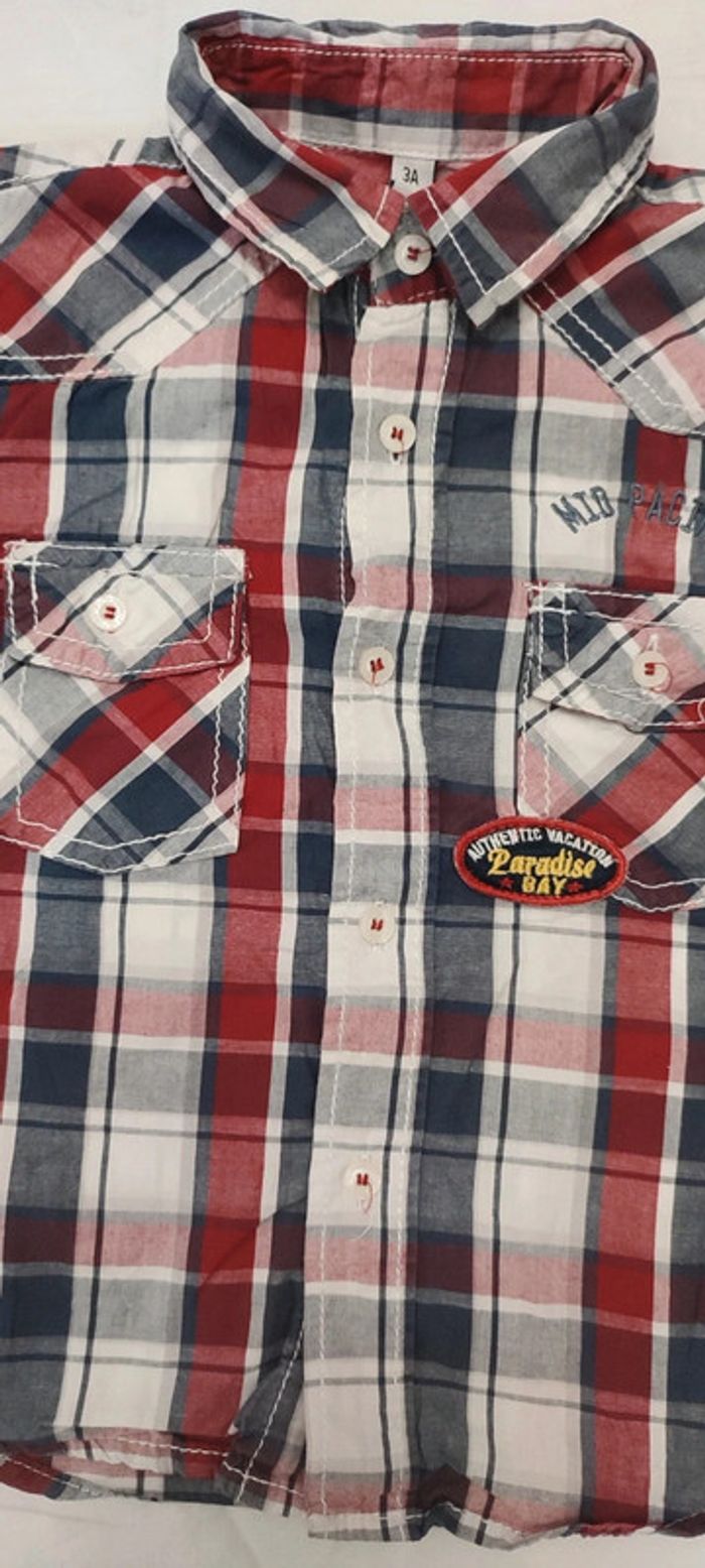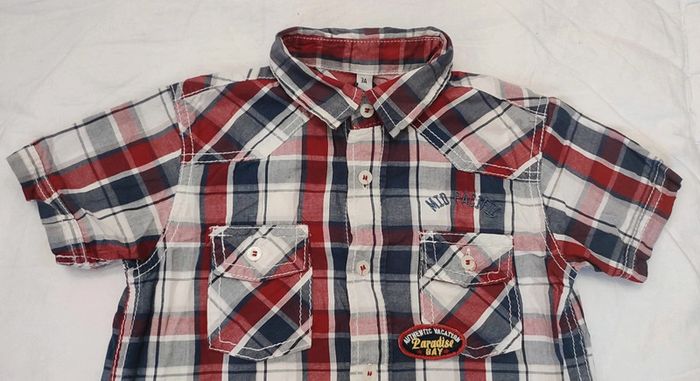 #amaandineebgarçon3ans Chemise à carreaux à manches courtes rouge gris et blanc. Deux poches à l'avant. Boutonnière classique. Très bon état. Sans tâches ni trous. 3 ans.