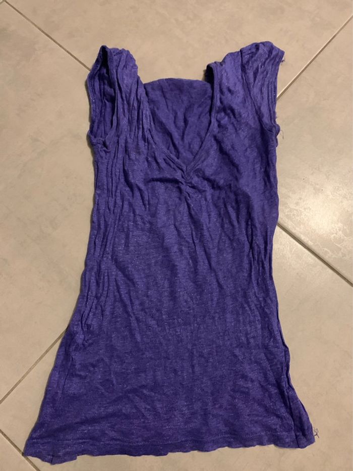 tee shirt violine avec pailette transparents kookai taille O bon état