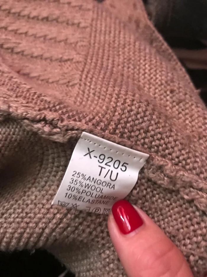 Gilet femme manche longue , beige foncé , s attache avec des aggraffes , taille unique 25% ANGORA 35% WOOL 30% POLYAMIDE 10% ELASTANE NEW FASHION tres bon etat