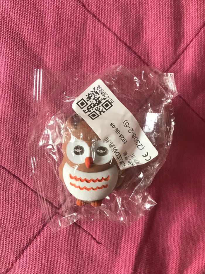 porte clef hiboux marron beige neuf sous blister au dos faut tirer la languette et les yeux du hiboux s eclaire