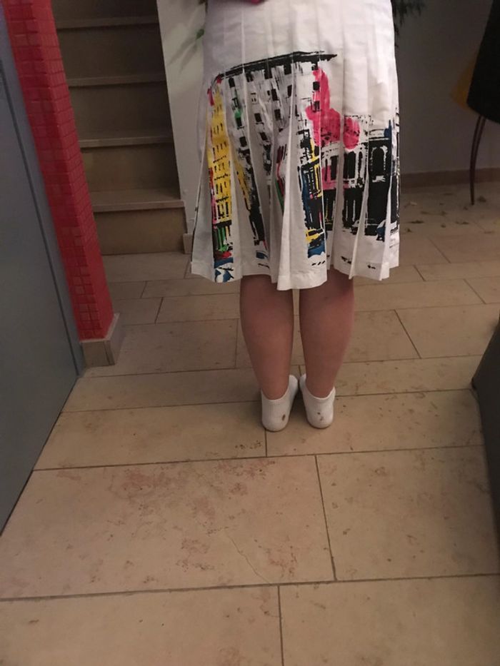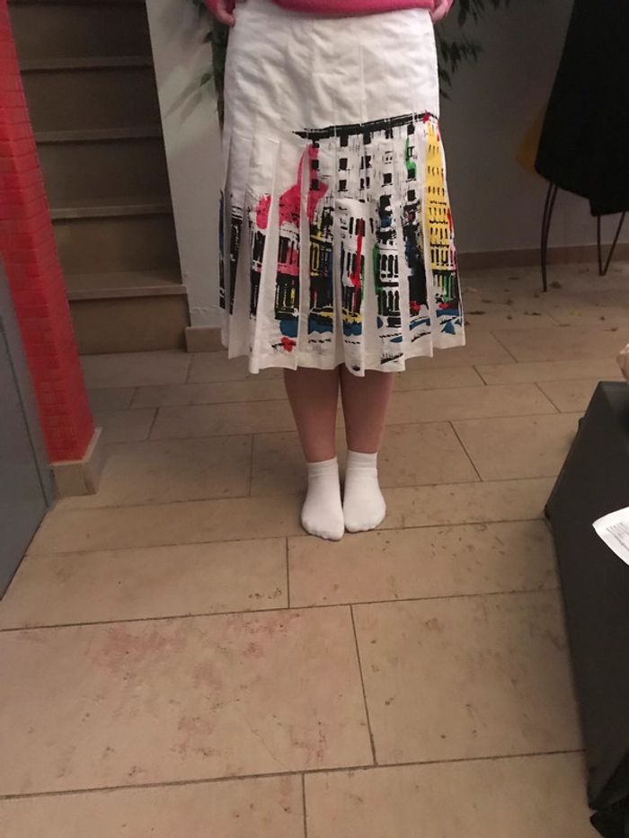 jupe plissée blanche femme , fermeture eclair sur le cotes longeur de la robe de la taille jusqu'en bas 53 cm largeur 36 cm taille 36 DESIGUAL tres bon etat