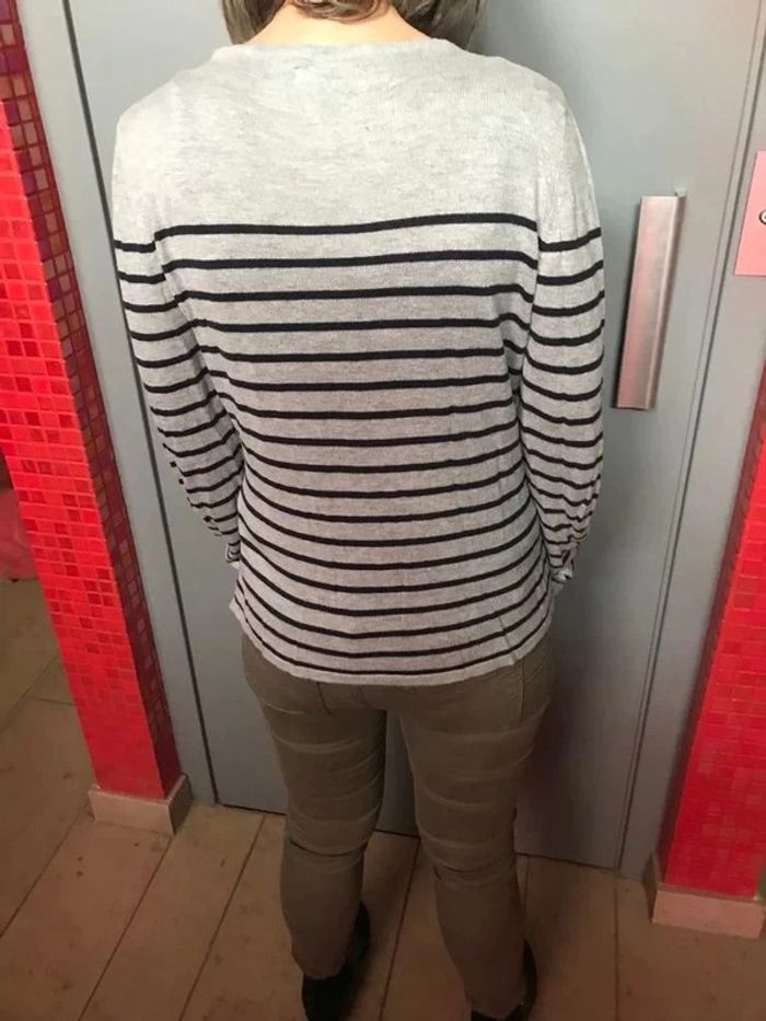 Pull femme façon mariniere 3 petits boutons sur 1 épaule 50% cotons 50% viscose de aisselle à aisselle 40 cm taille S cahe cahe tres bon etat