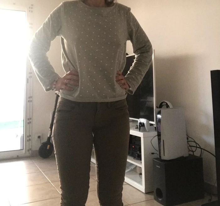 jeans slim femme only petite tache a coté de la cuisse legere preuve a l appuie sur la photo taille 34 kaki satisfaisant