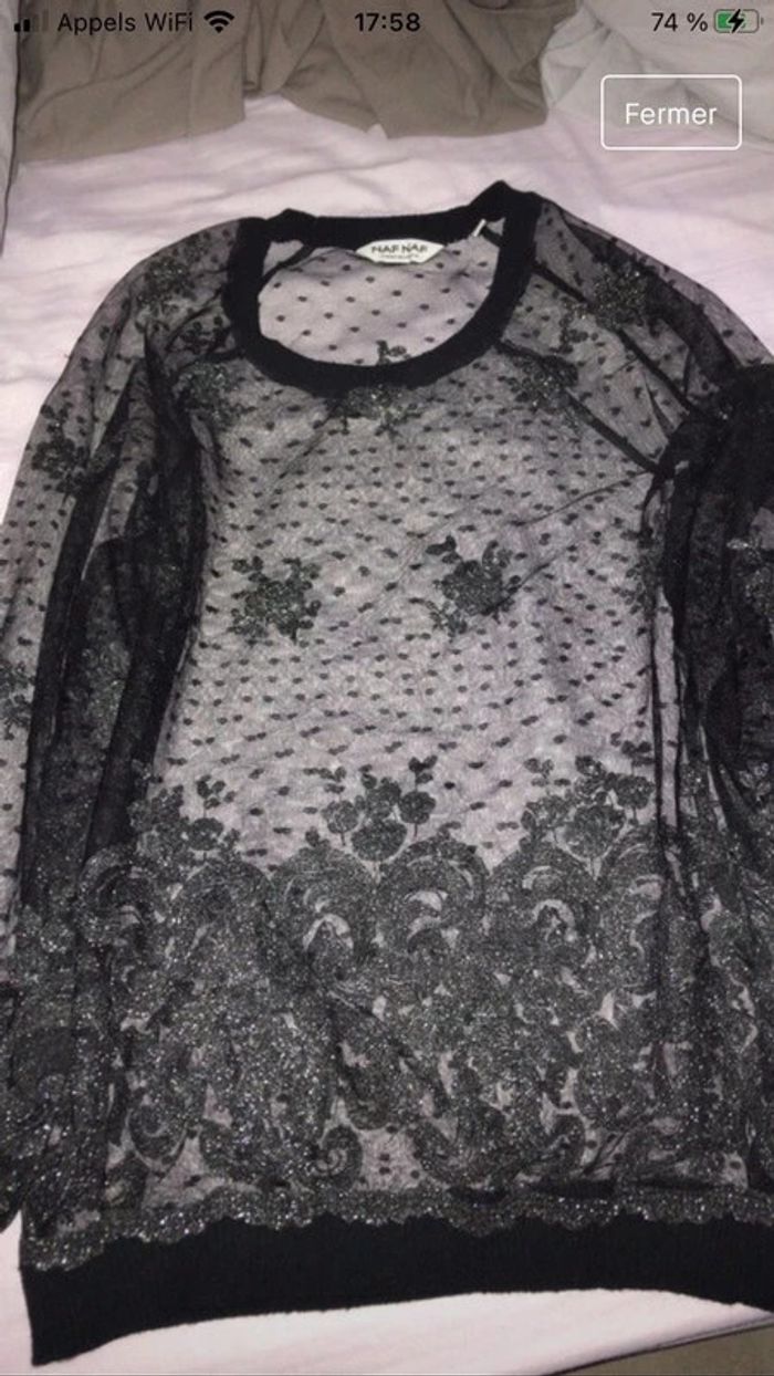 haut femme leger manche longue noir et argenté NAF NAF TAILLE XS neuf