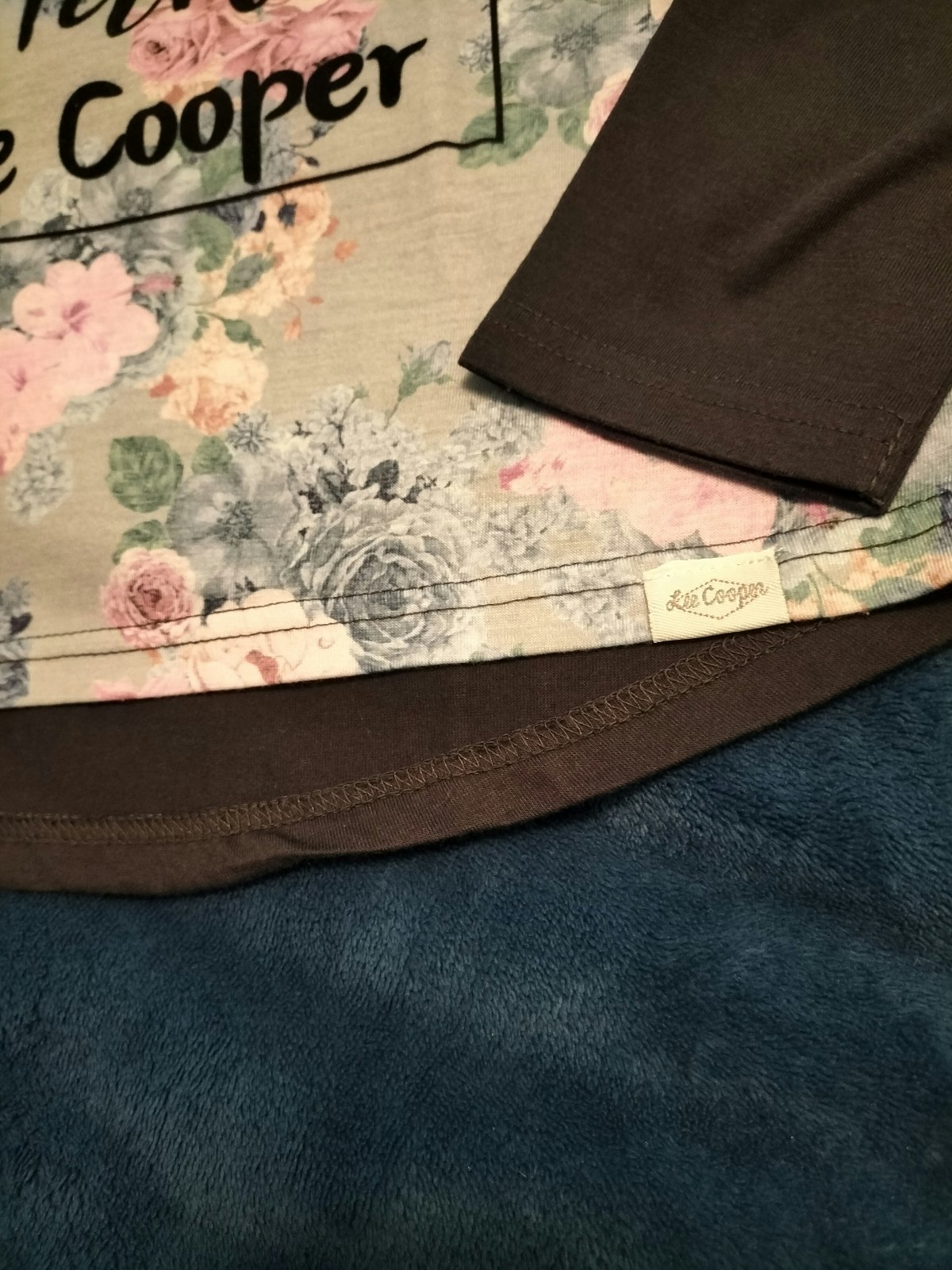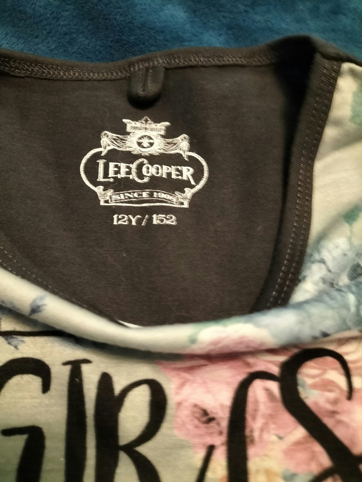 De marque Lee Cooper Neuf taille 12 ans Forme arrondie en bas Décor floral et inscription devant