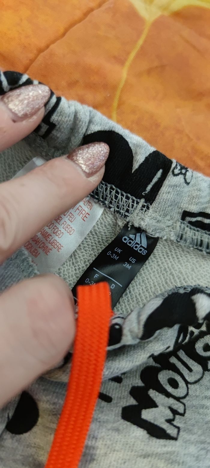 Short Adidas Mickey Comme neuf,pas de tâches apparentes 0-3 Mois (voir taille photo) Photos (devant-derrière du short) Noir Gris